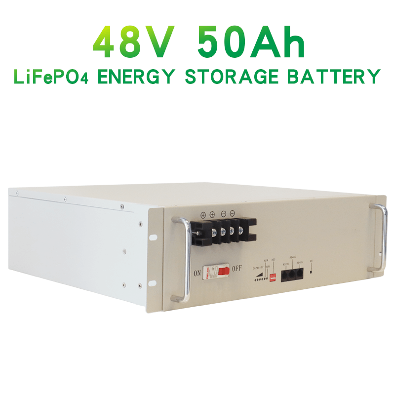 Энэхүү 48V 50Ah LFP батерейны систем нь BMS болон зэвэрдэггүй ган хайрцагтай бөгөөд хар эсвэл цагаан өнгөөр будсан.
